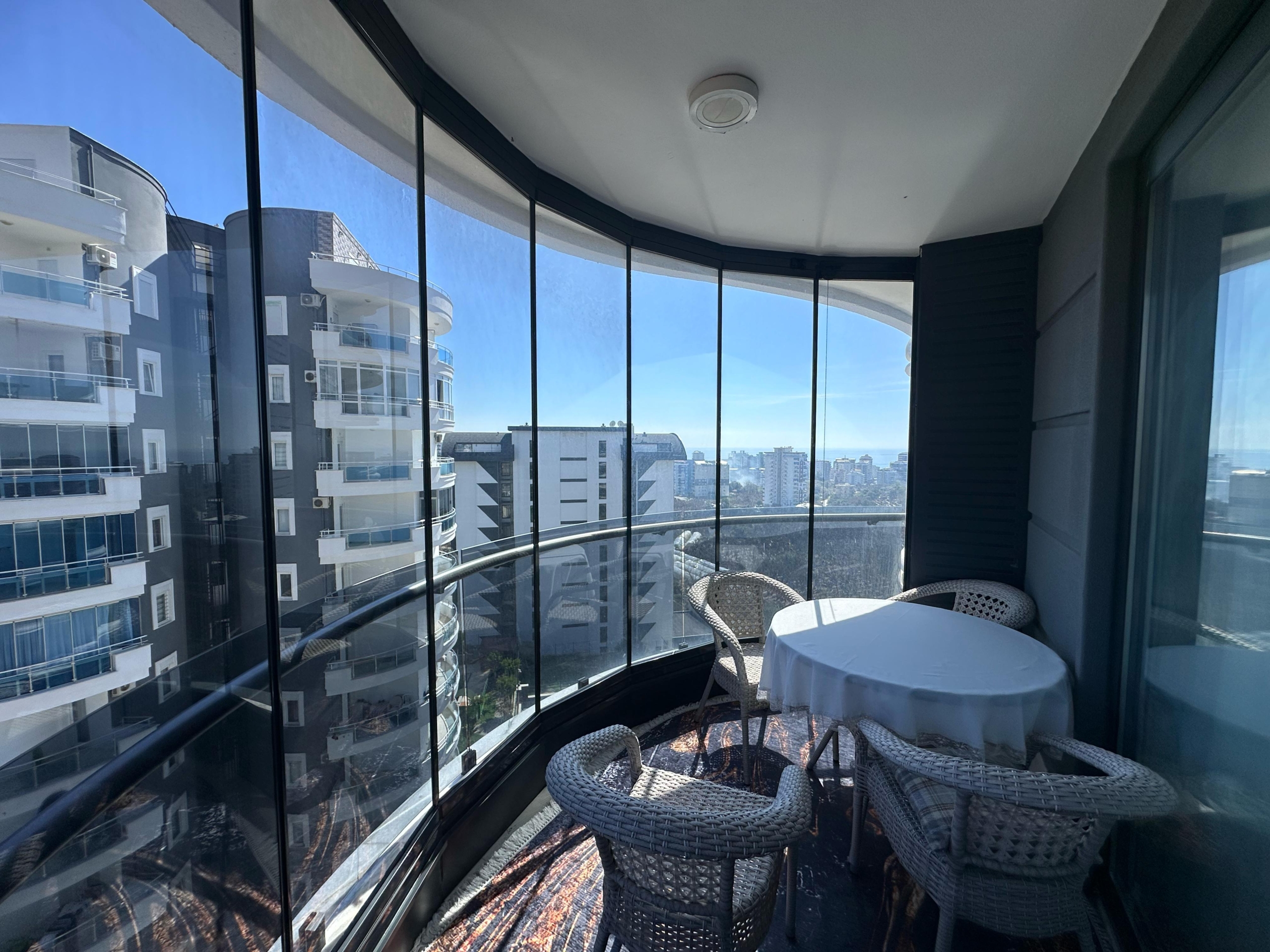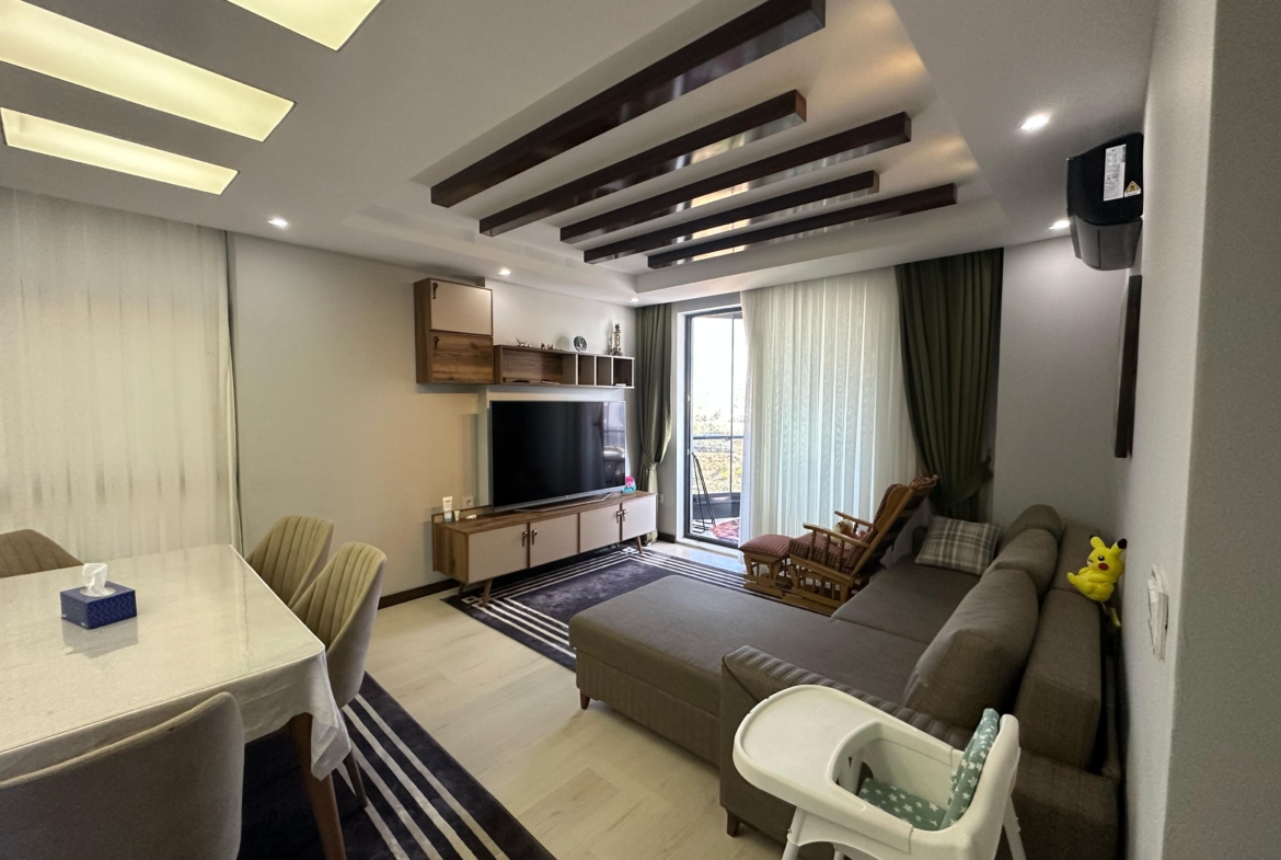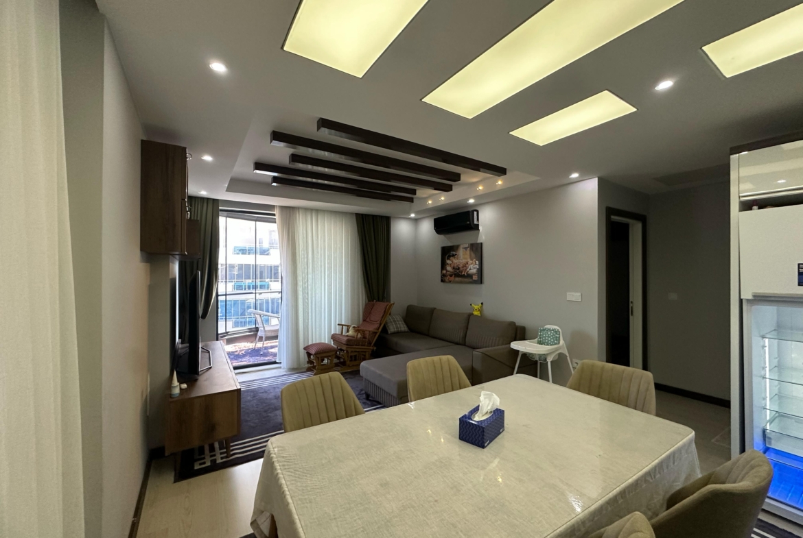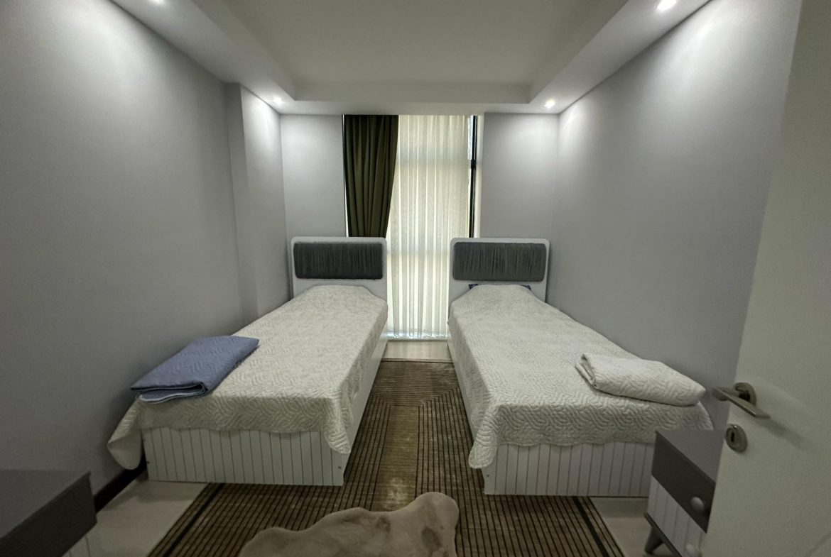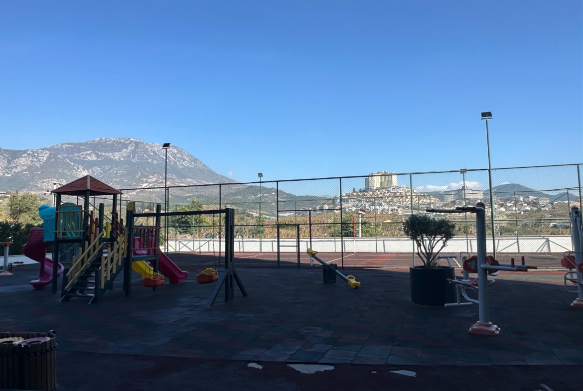 Mieszkanie ma piękny widok na morze oraz malownicze góry․ Mieszkanie znajduje się na czwartym piętrze․ Jest w pełni umeblowane․ Posiada dwie sypialnie oraz salon z kuchnią․ Mieszkanie znajduje się 2 kilometry od morza i posiada serwis‚ który zawozi na plaże․ Mieszkanie ma jedną łazienkę․ Balkon szklany․ Na terenie osiedla znajdują się otwarty oraz zamknięty basen․ Część wypoczynkowa fitness‚ sauna‚ hamam‚ sala kinowa․ Plac zabaw dla dzieci‚ dozorca‚ generator prądu․