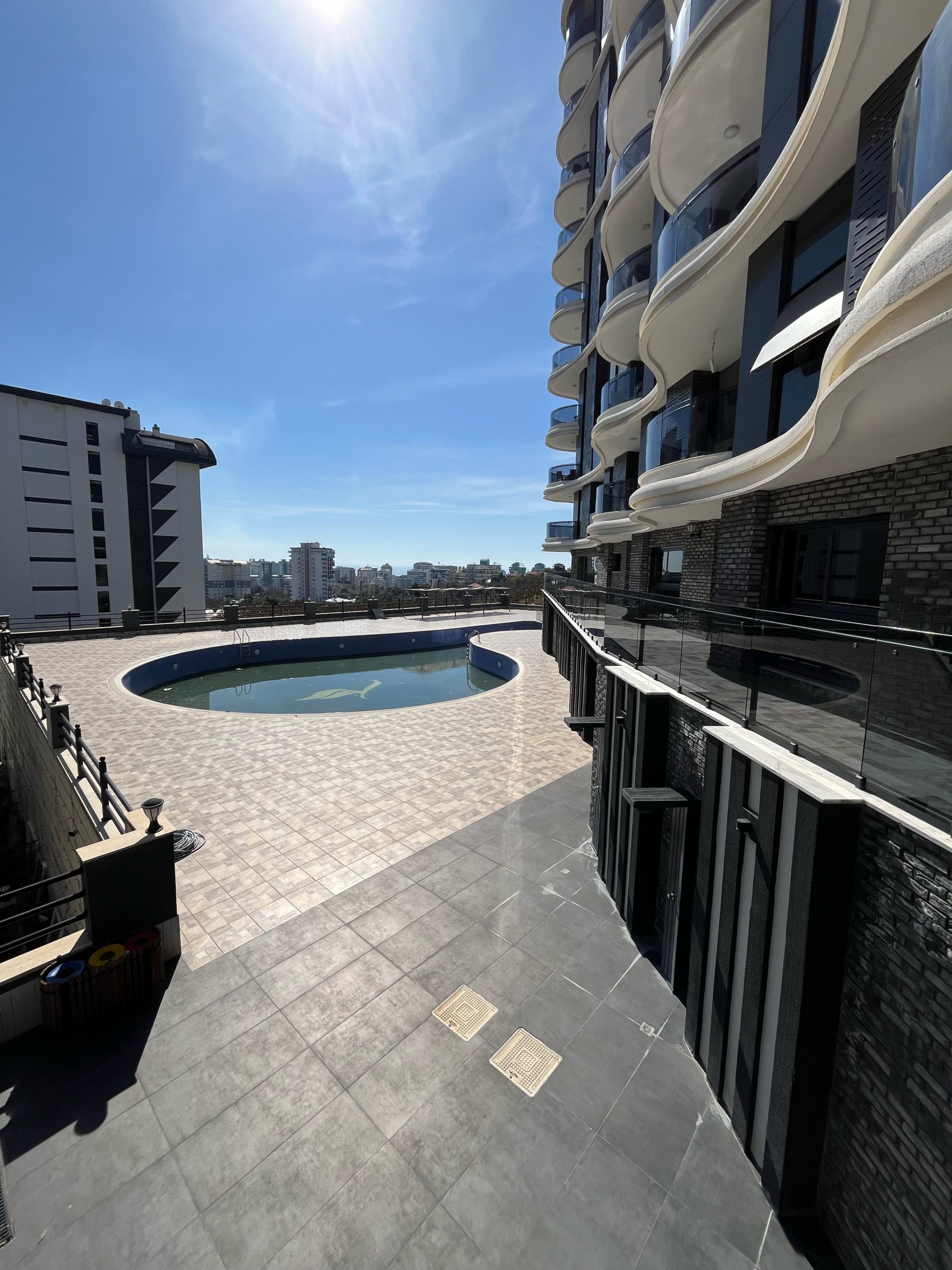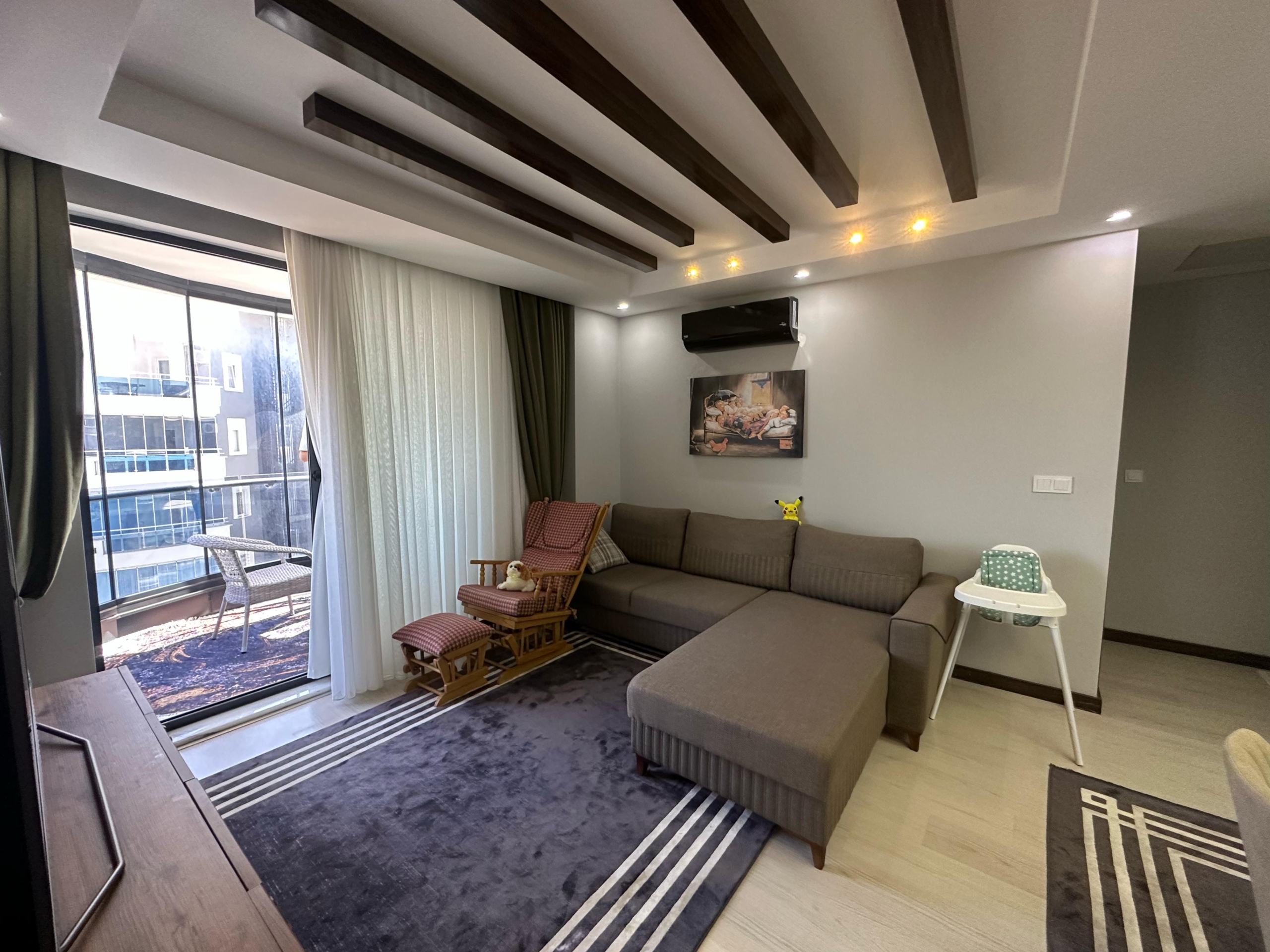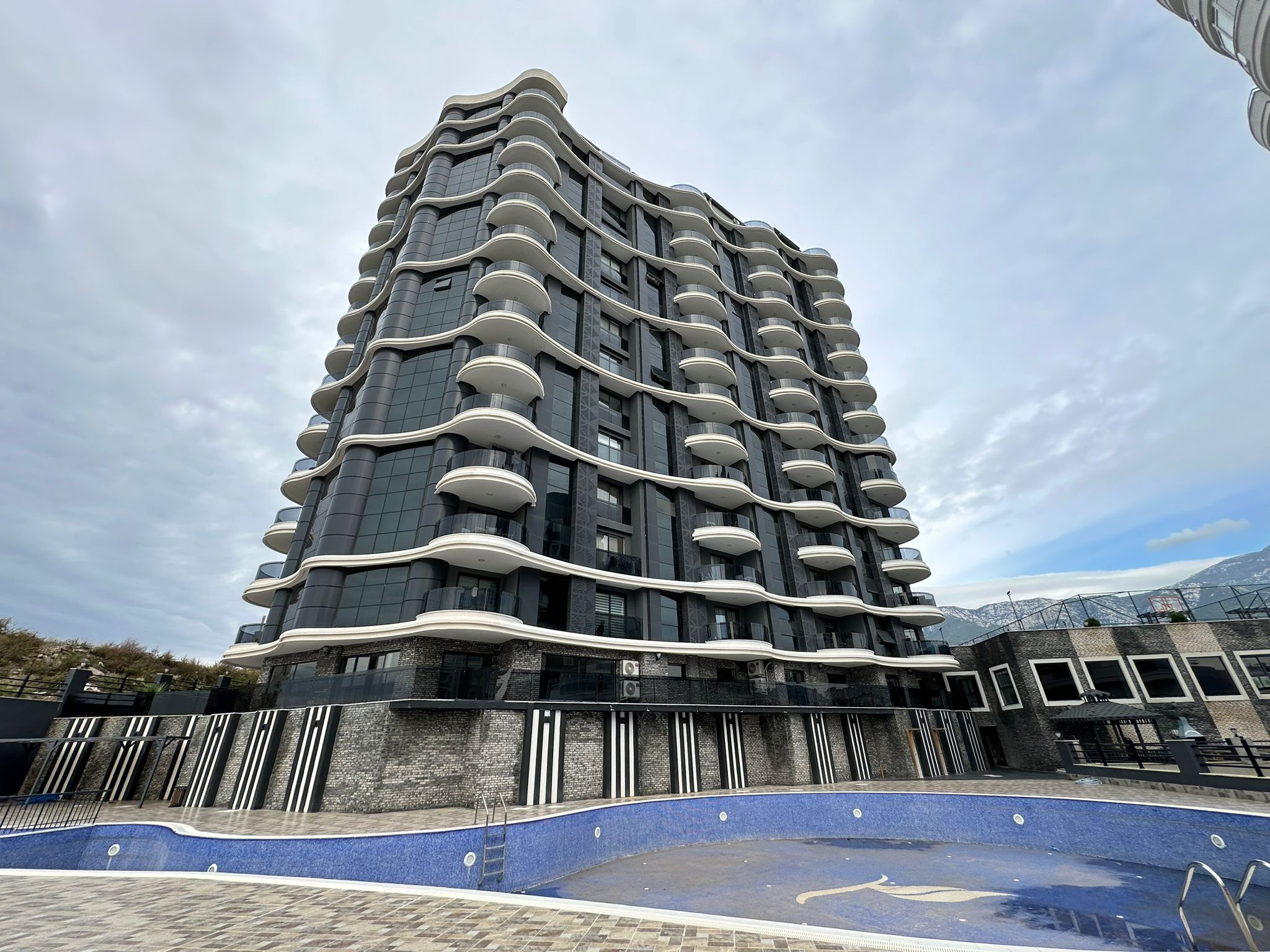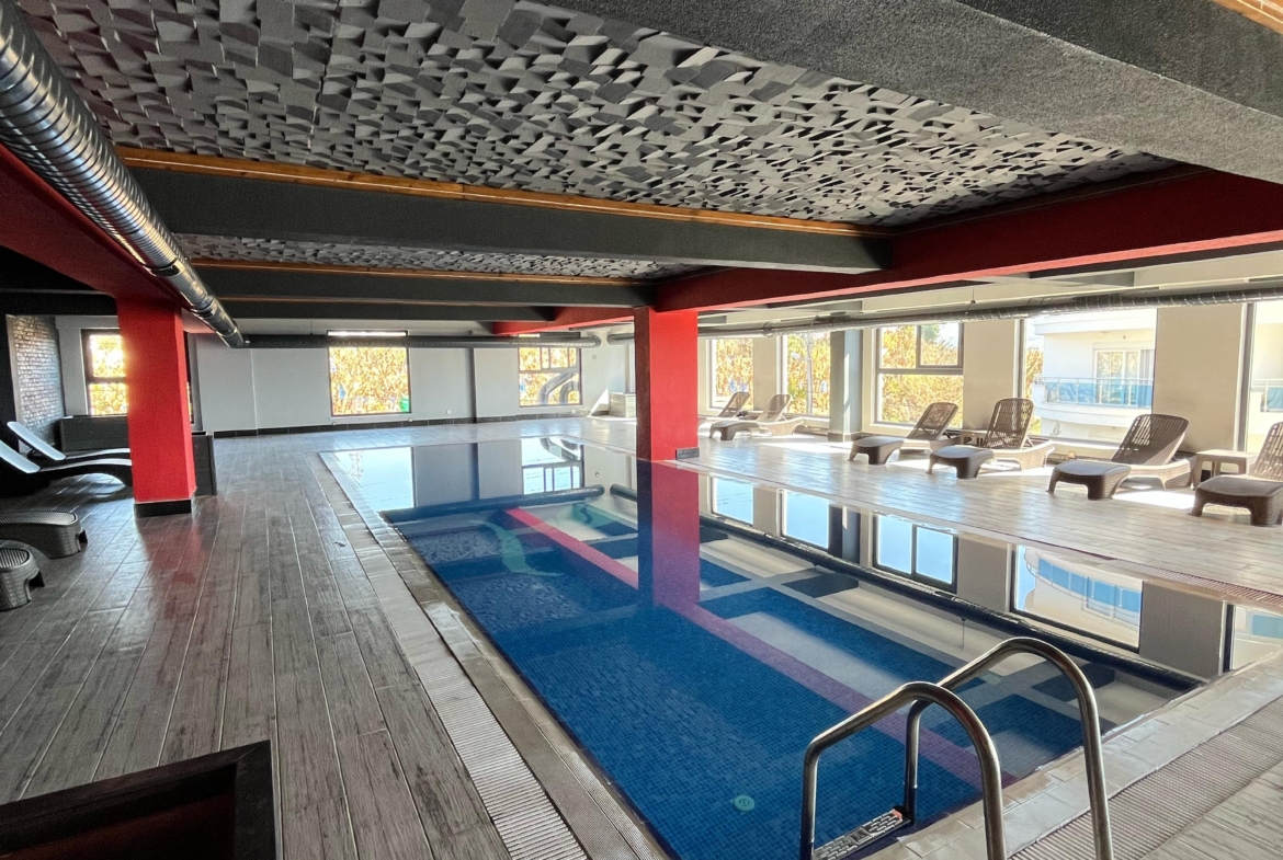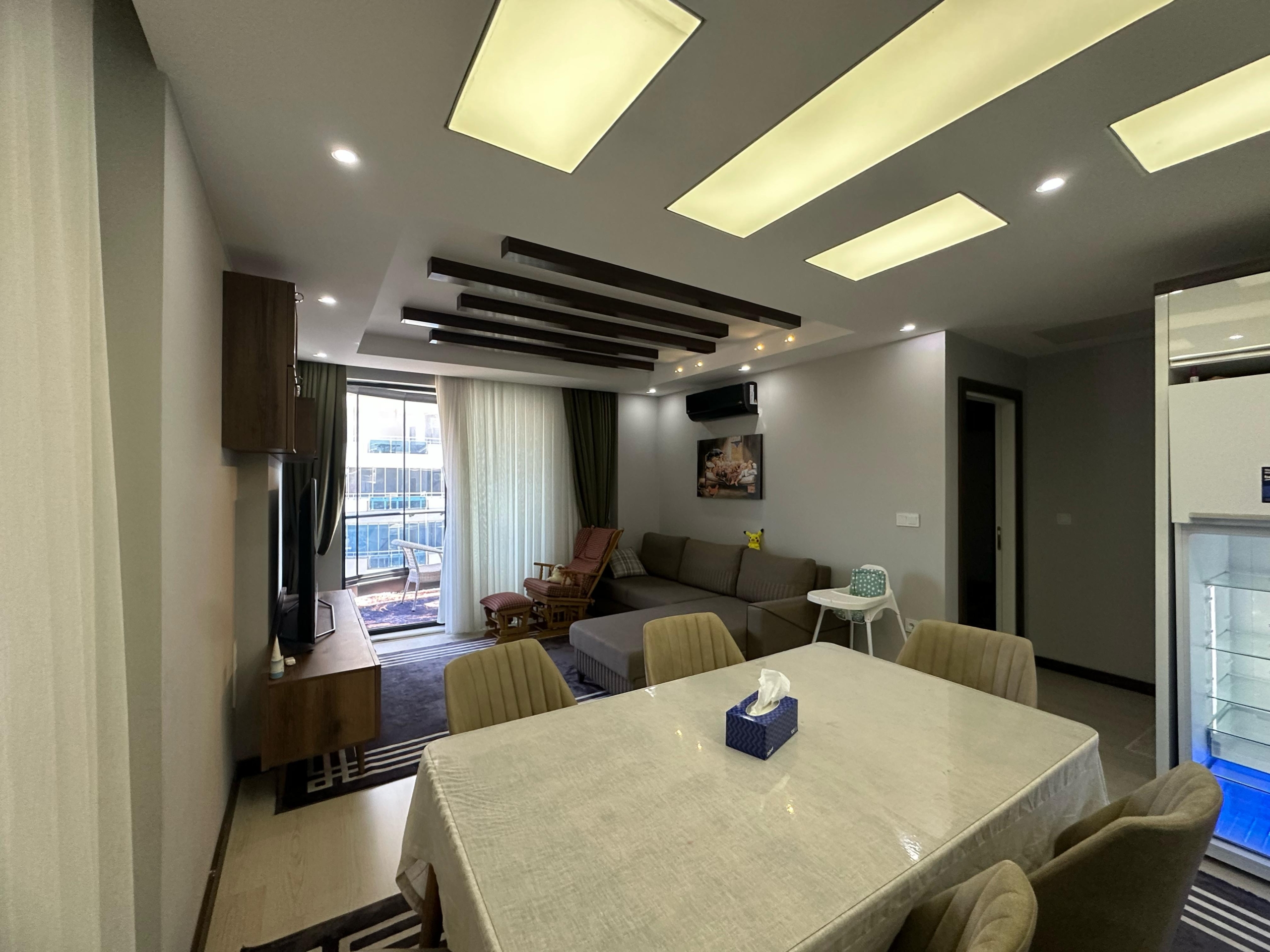Mieszkanie ma piękny widok na morze oraz malownicze góry․ Mieszkanie znajduje się na czwartym piętrze․ Jest w pełni umeblowane․ Posiada dwie sypialnie oraz salon z kuchnią․ Mieszkanie znajduje się 2 kilometry od morza i posiada serwis‚ który zawozi na plaże․ Mieszkanie ma jedną łazienkę․ Balkon szklany․ Na terenie osiedla znajdują się otwarty oraz zamknięty basen․ Część wypoczynkowa fitness‚ sauna‚ hamam‚ sala kinowa․ Plac zabaw dla dzieci‚ dozorca‚ generator prądu․