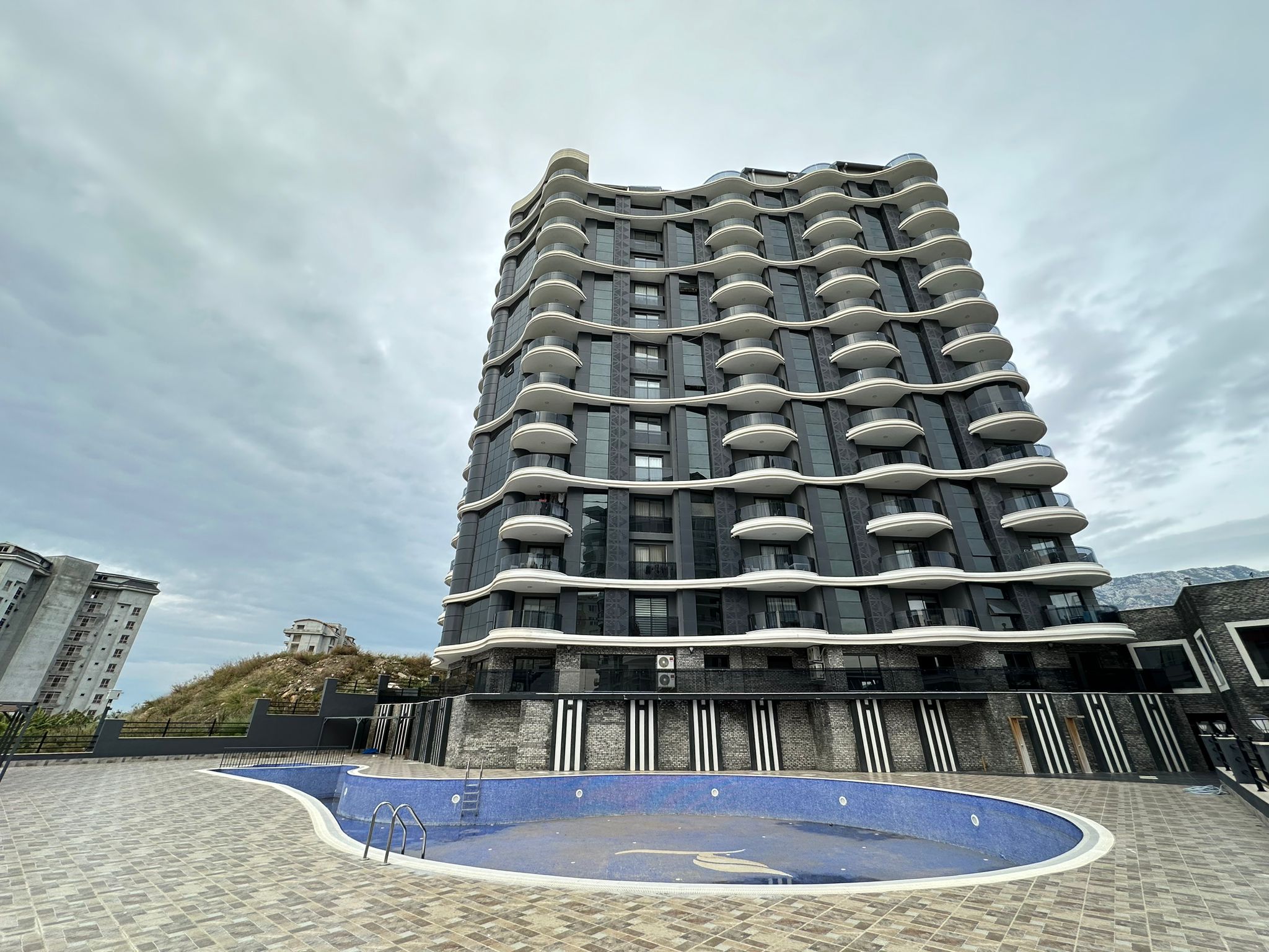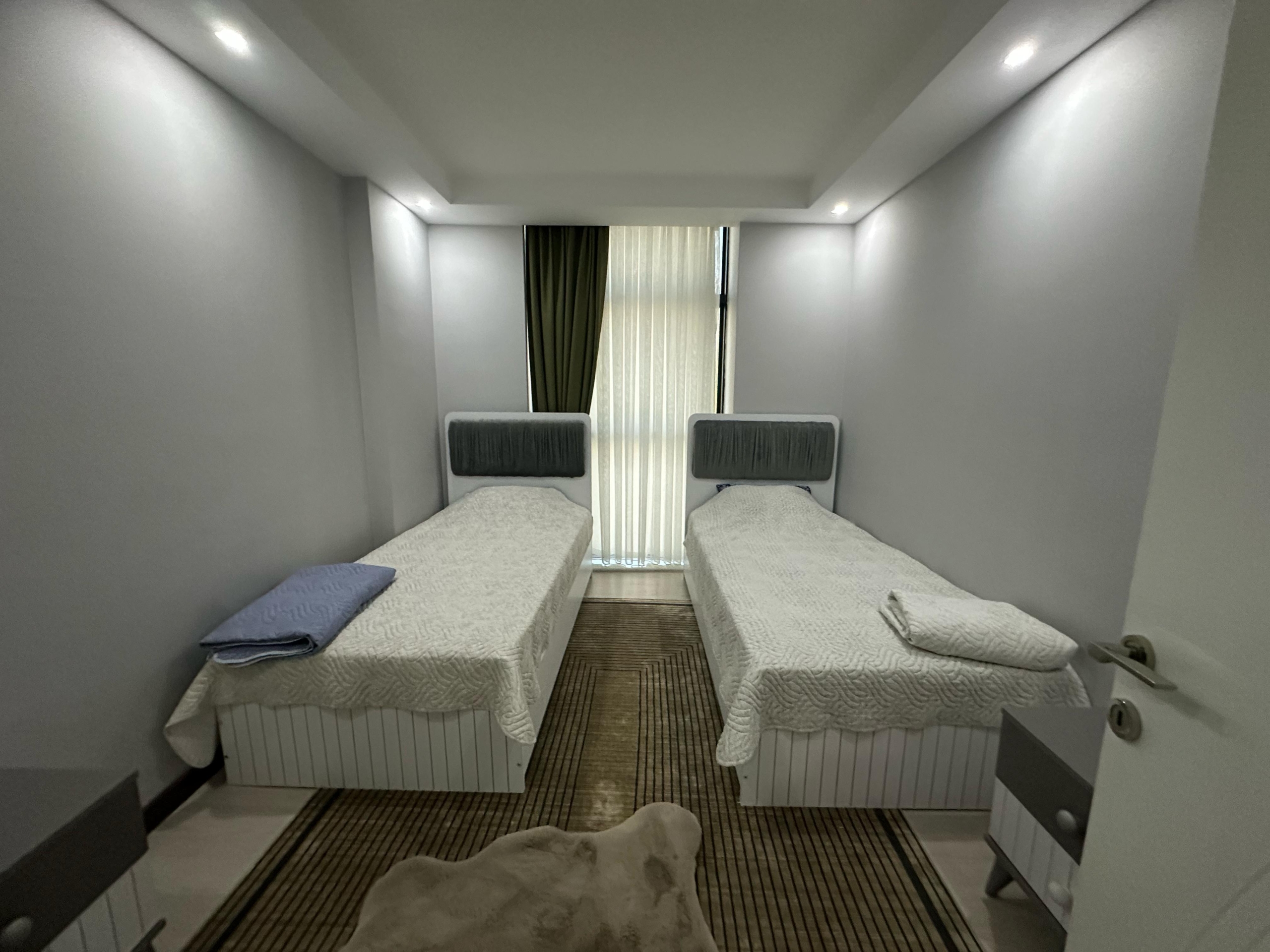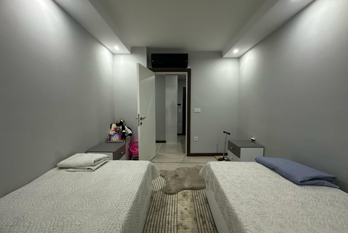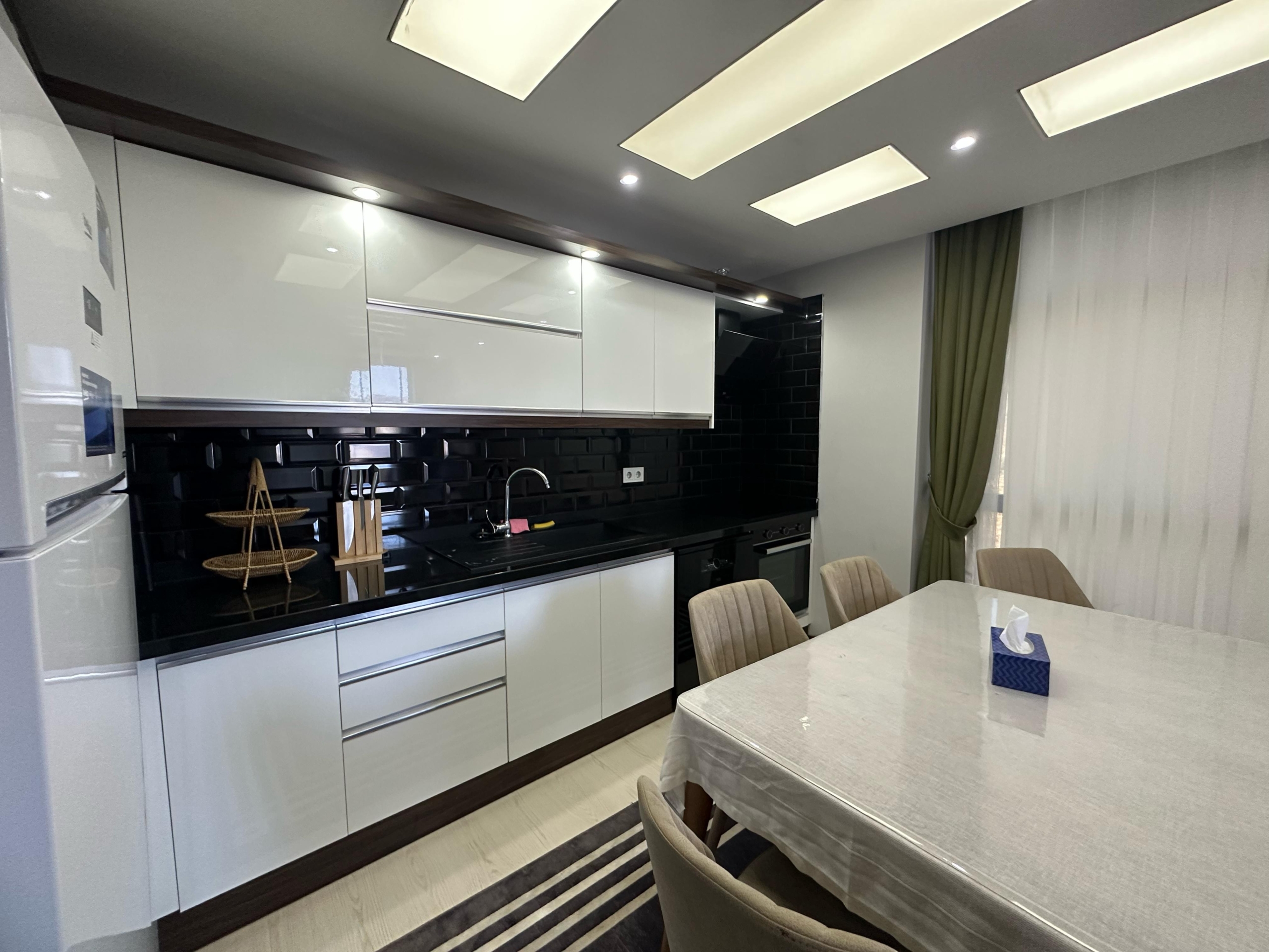 Mieszkanie ma piękny widok na morze oraz malownicze góry․ Mieszkanie znajduje się na czwartym piętrze․ Jest w pełni umeblowane․ Posiada dwie sypialnie oraz salon z kuchnią․ Mieszkanie znajduje się 2 kilometry od morza i posiada serwis‚ który zawozi na plaże․ Mieszkanie ma jedną łazienkę․ Balkon szklany․ Na terenie osiedla znajdują się otwarty oraz zamknięty basen․ Część wypoczynkowa fitness‚ sauna‚ hamam‚ sala kinowa․ Plac zabaw dla dzieci‚ dozorca‚ generator prądu․