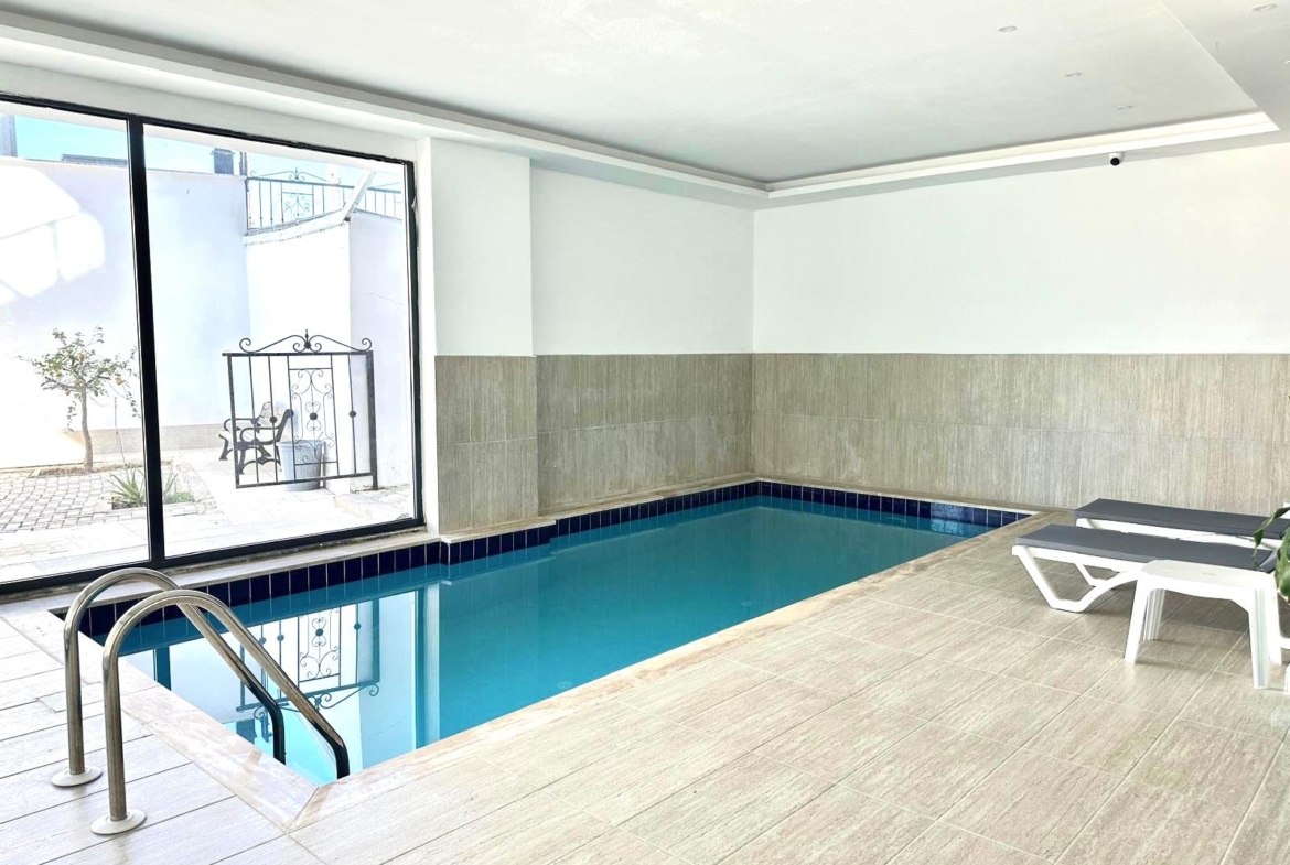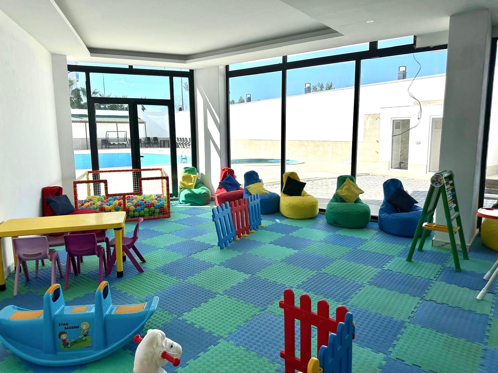 W odległości 100 m znajduje się przepiękna plaża. Apartament jest dwupoziomowy. Znajduje się na czwartym – piątym piętrze․ Posiada dwie sypialnie‚ salon z kuchnią․ Dwa balkony, dwie łazienki oraz dwie toalety․ Mieszkanie zwrócone jest w kierunku południowym. Z apartamentu jest widok na morze. Na terenie osiedla znajduje się otwarty i zamknięty basen‚ sauna, fitness, plac zabaw dla dzieci, boisko do koszykówki, parking oraz generator prądu․