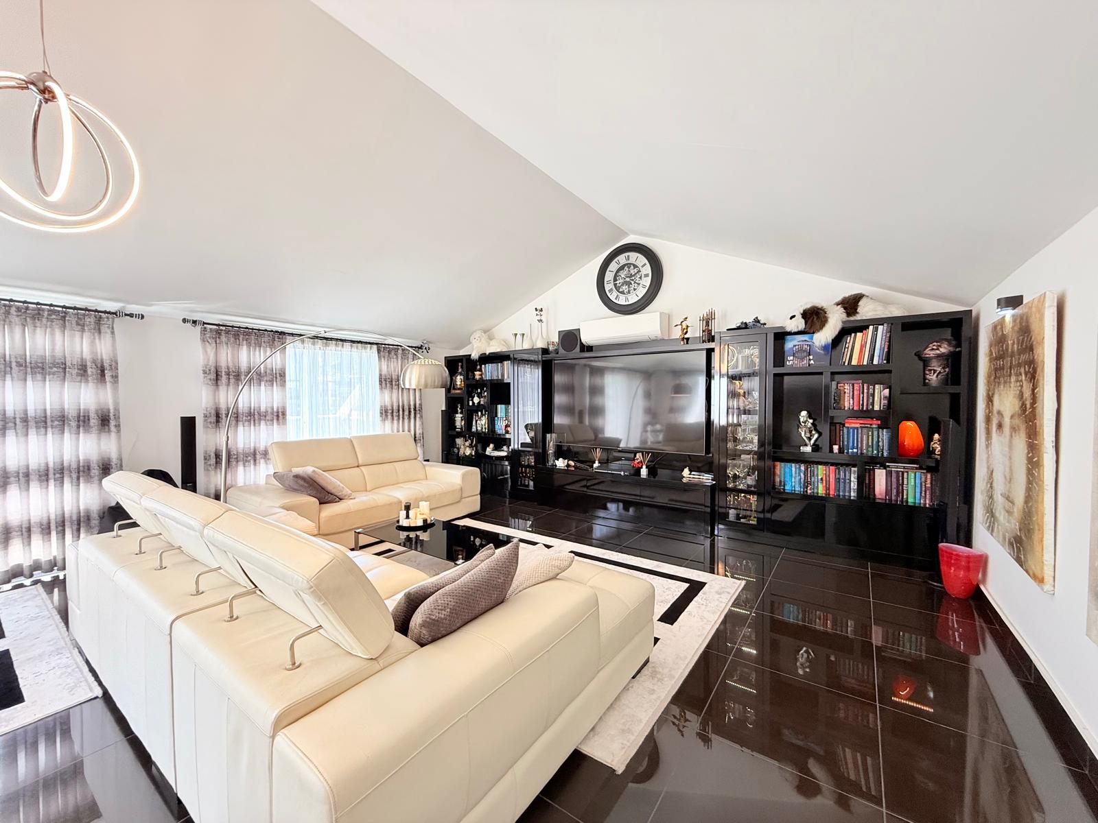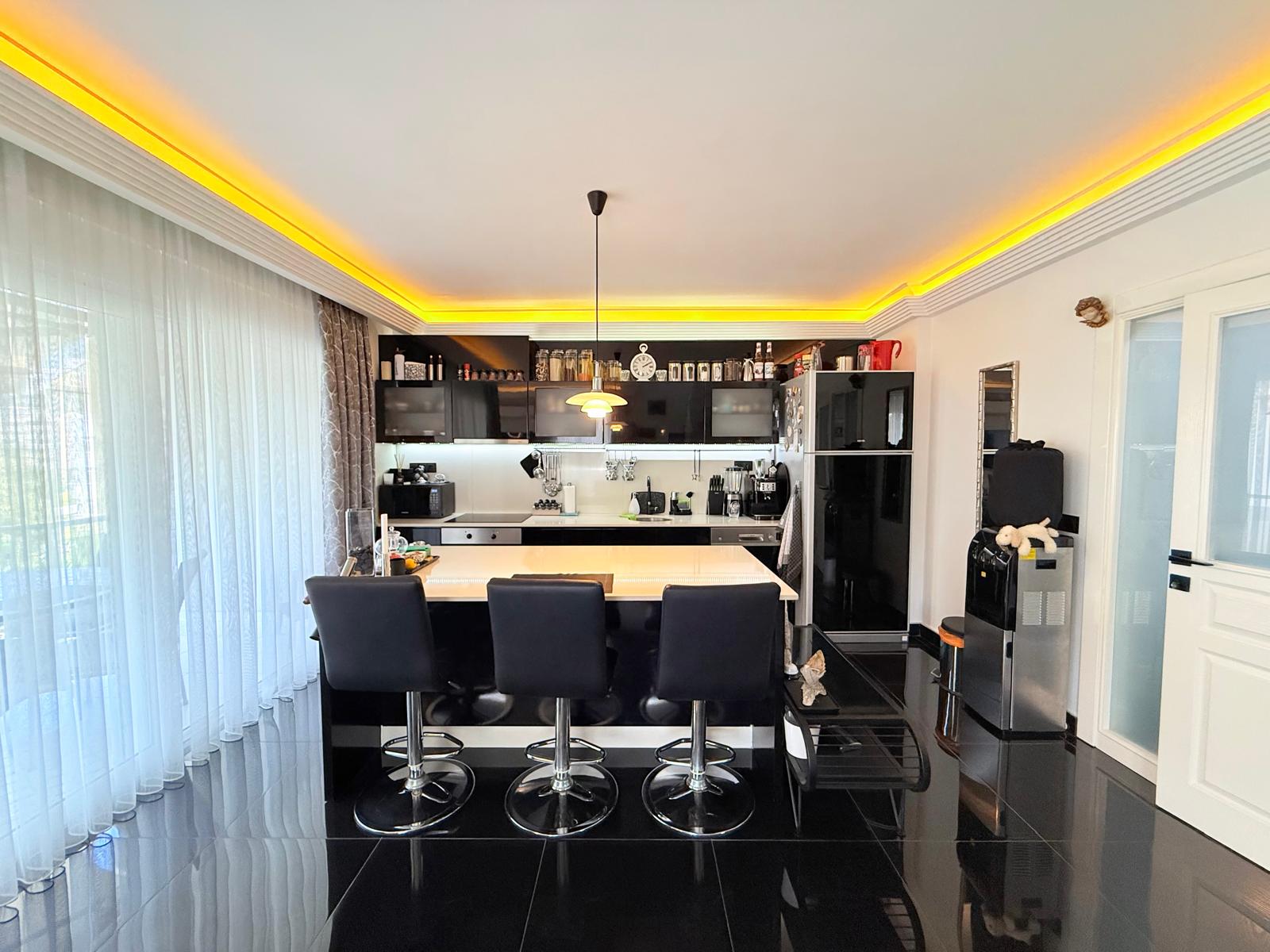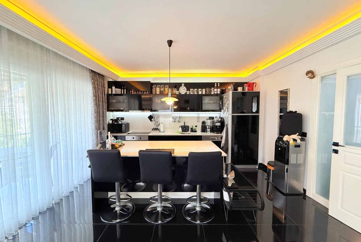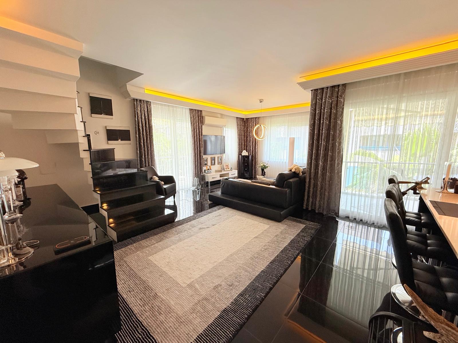 Dwupoziomowy apartament na sprzedaż w bardzo dobrej lokalizacji, w samym centrum Alanyi. W odległości 100 m znajduje się plaża Kleopatry, centrum handlowe, restauracje i regionalny bazar. Mieszkanie znajduje się na ostatnim piętrze․ Zwrócone jest w kierunku wschodnio-południowo-zachodnim․ Posiada trzy sypialnie‚ dwa salony oraz kuchnie․ Apartament ma trzy łazienki oraz siedem balkonów․ Jest w pełni umeblowane․ Apartament posiada system kamer w mieszkaniu․
