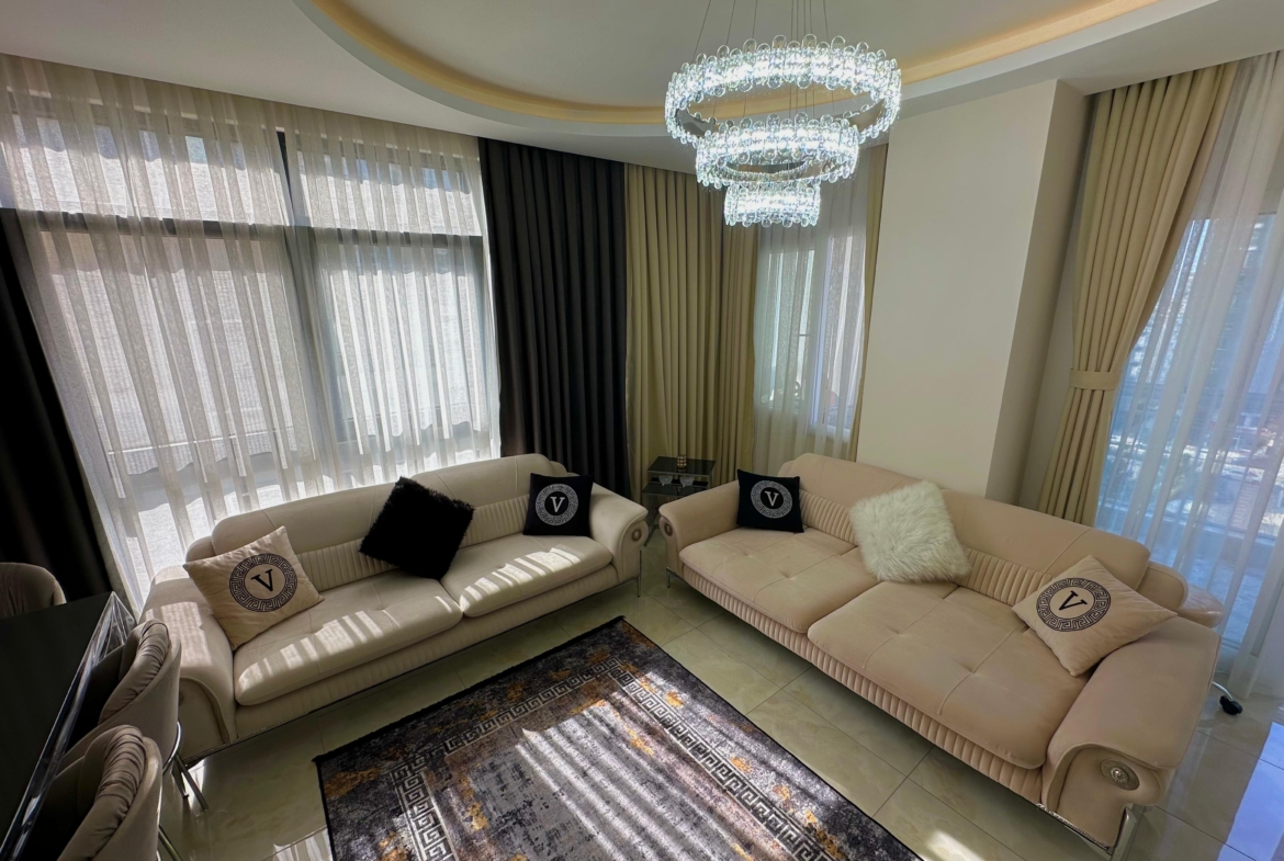 Mieszkanie jest pięknie urządzony‚ posiada wszystkie sprzęty․ Mieszkanie znajduje się na trzecim piętrze․ Mieszkanie składa się z jednej sypialni oraz salonu z kuchnią. Zwrócone jest w kierunku południowym․ Posiada dwa balkony‚ jeden jest zabudowany․ Na terenie osiedla znajdują się otwarty oraz zamknięty basen․ Część wypoczynkowa zawiera hamam‚ sauna‚ boisko do koszykówki․ Plac zabaw dla dzieci oraz parking․