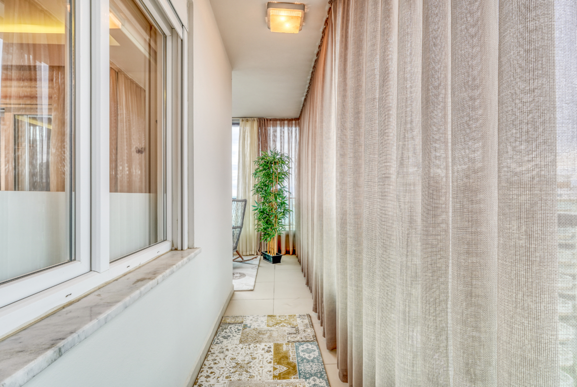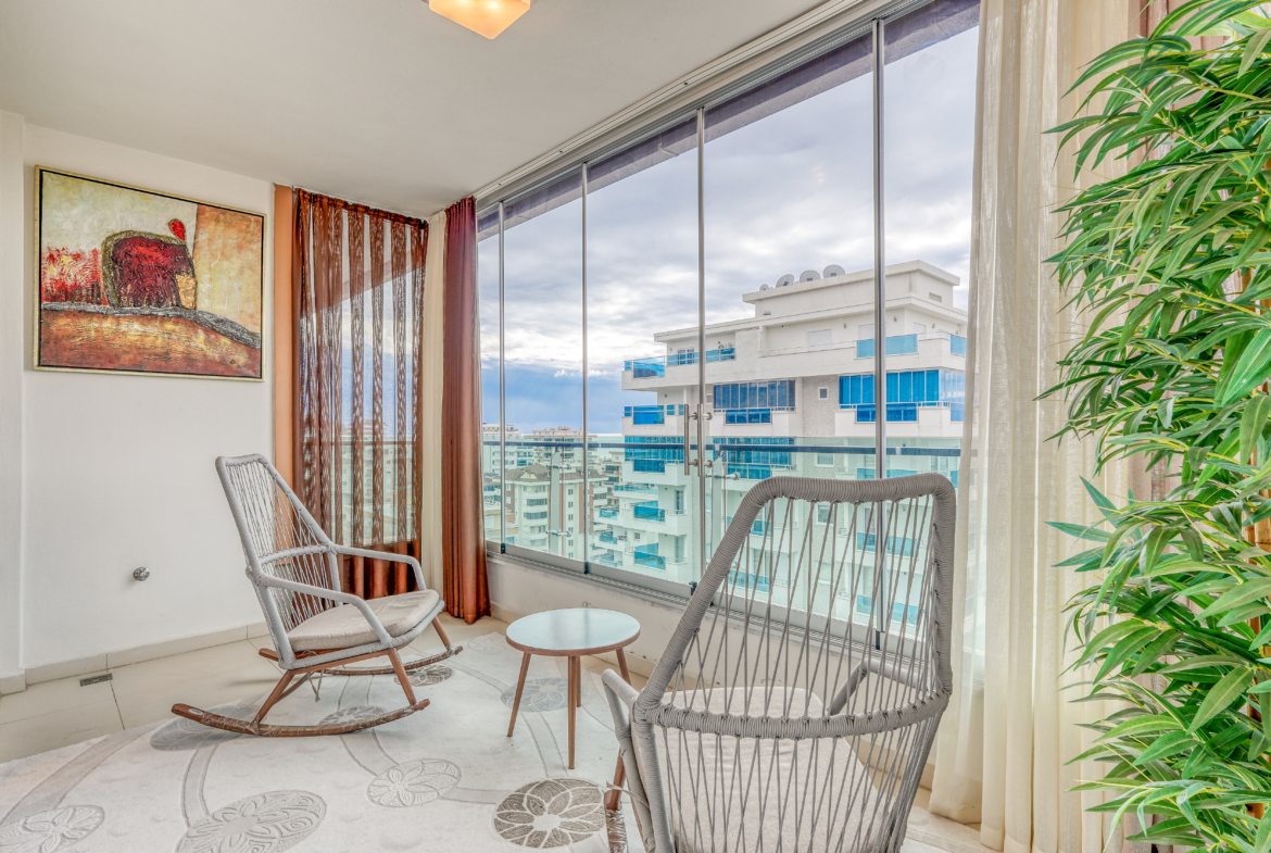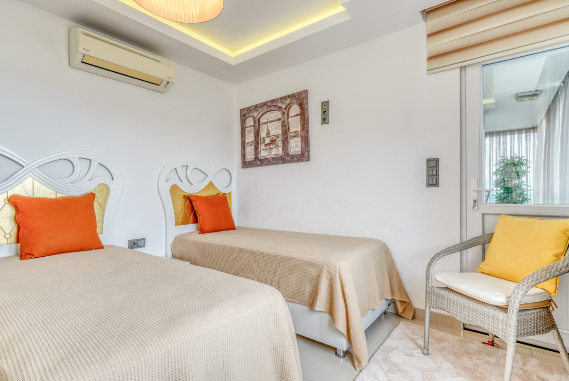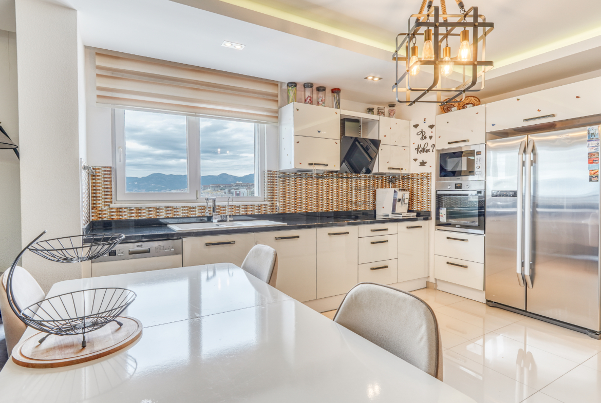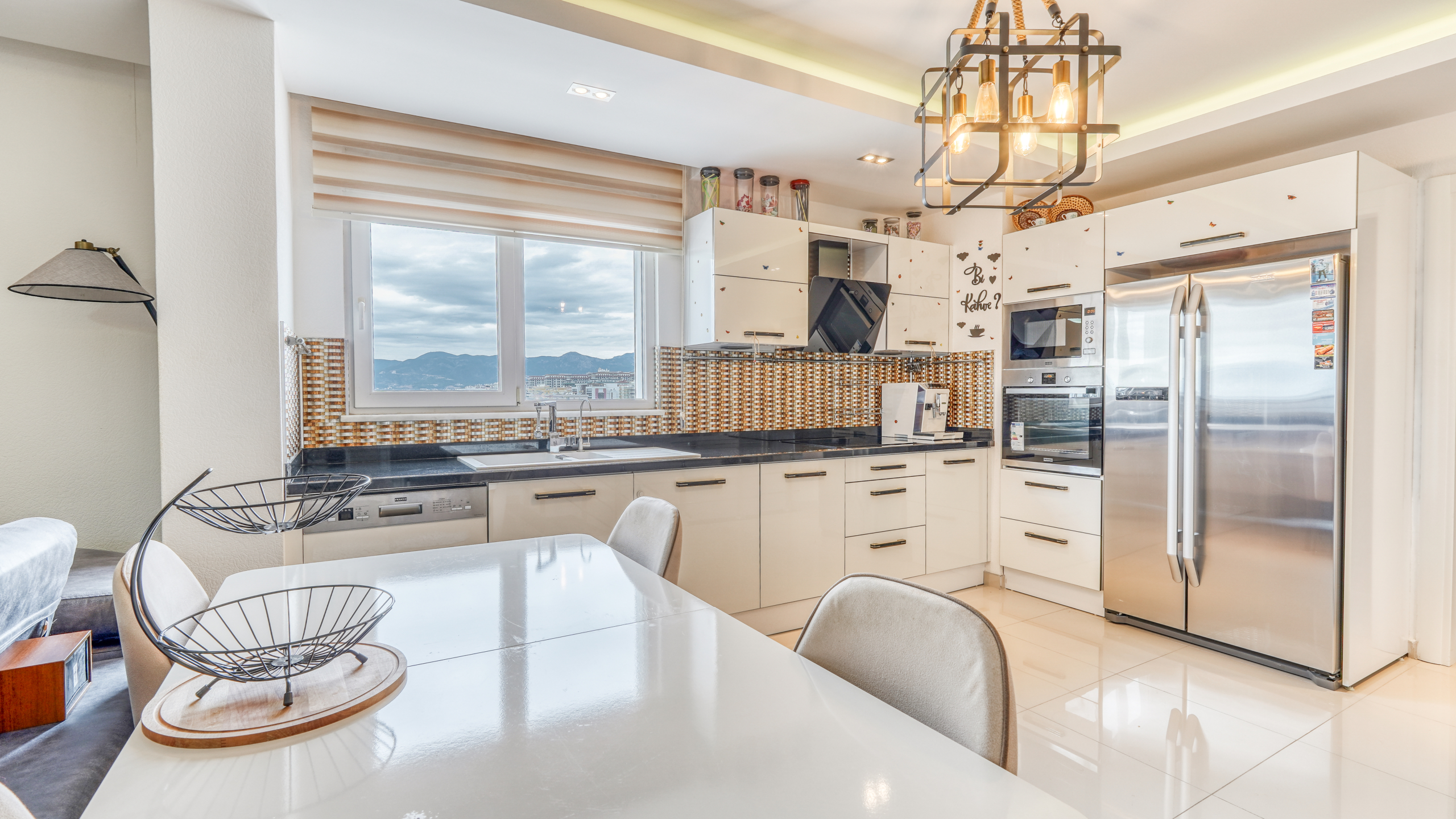 Mieszkanie dwupoziomowe na sprzedaż jest w pełni umeblowane. Posiada trzy sypialnie oraz salon kuchnią. Cztery łazienki. Trzy balkony. Mieszkanie jest zwrócone w kierunku południowo – zachodnim z częściowym widokiem na morze oraz góry. Na terenie posesji znajduje się basen, sauna oraz plac zabaw dla dzieci. Na terenie osiedla jest dozorca.