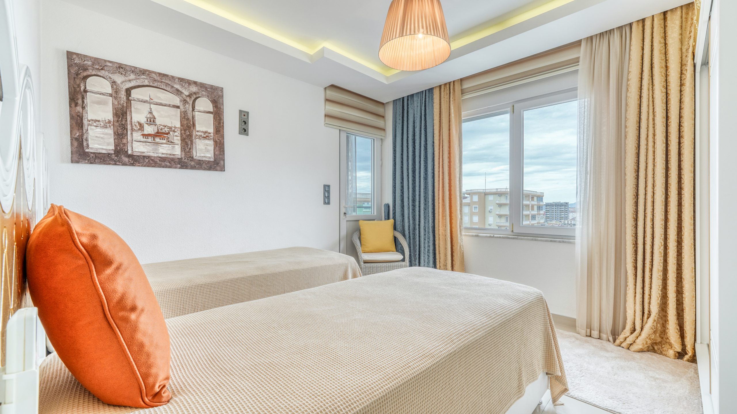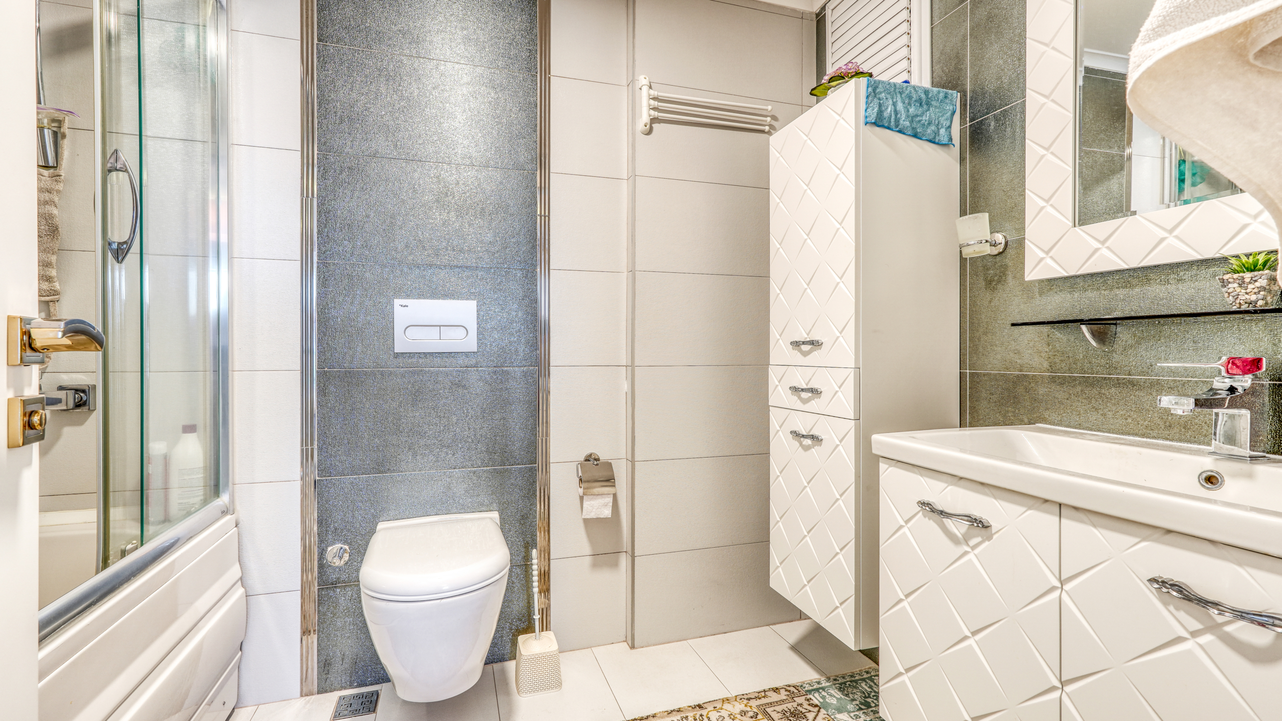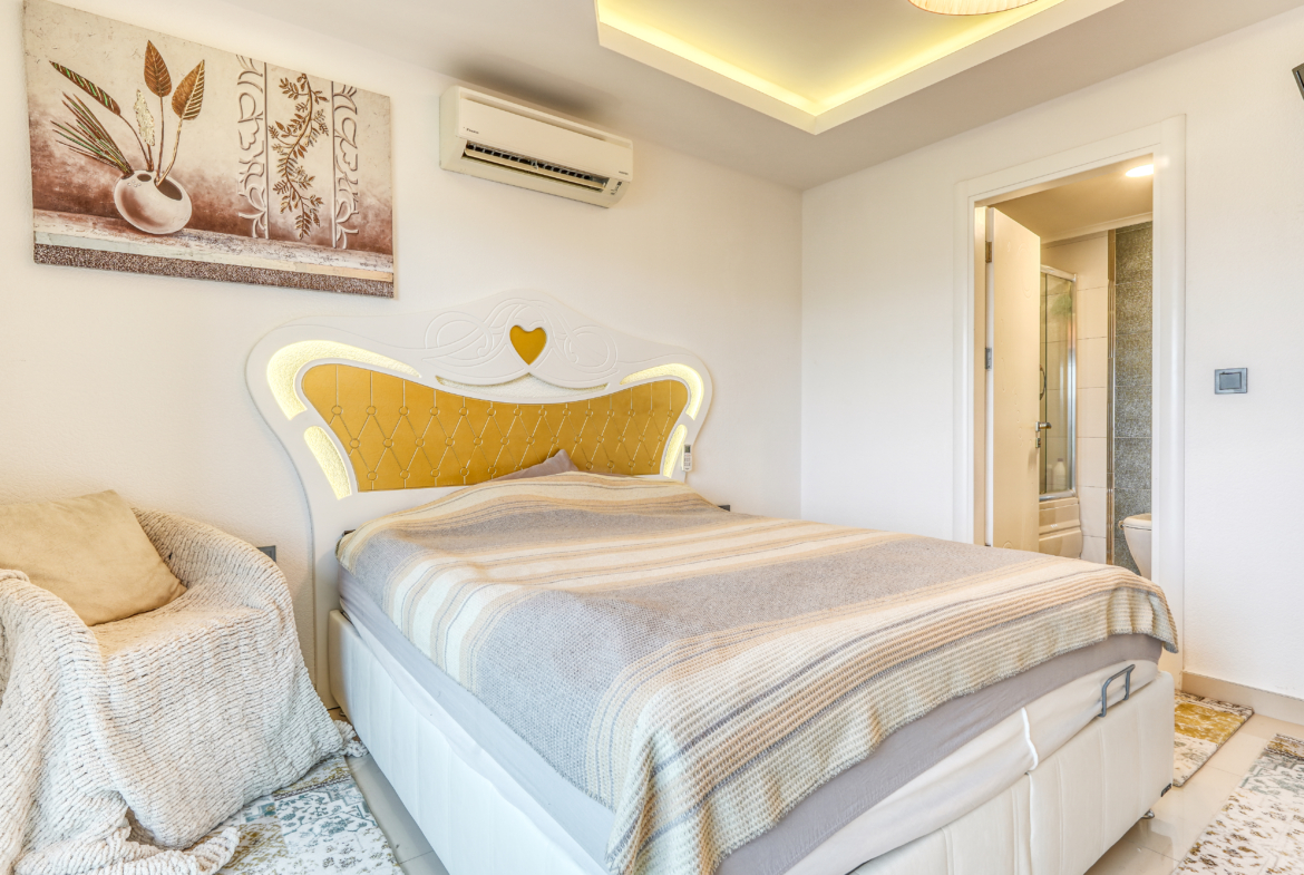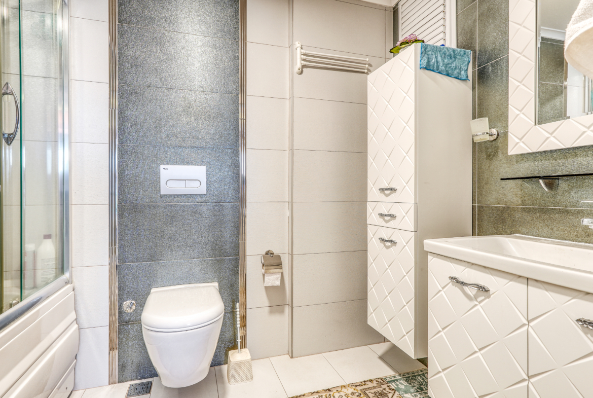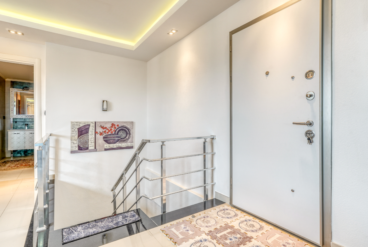 Mieszkanie dwupoziomowe na sprzedaż jest w pełni umeblowane. Posiada trzy sypialnie oraz salon kuchnią. Cztery łazienki. Trzy balkony. Mieszkanie jest zwrócone w kierunku południowo – zachodnim z częściowym widokiem na morze oraz góry. Na terenie posesji znajduje się basen, sauna oraz plac zabaw dla dzieci. Na terenie osiedla jest dozorca.