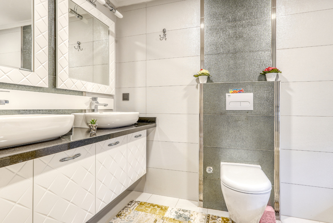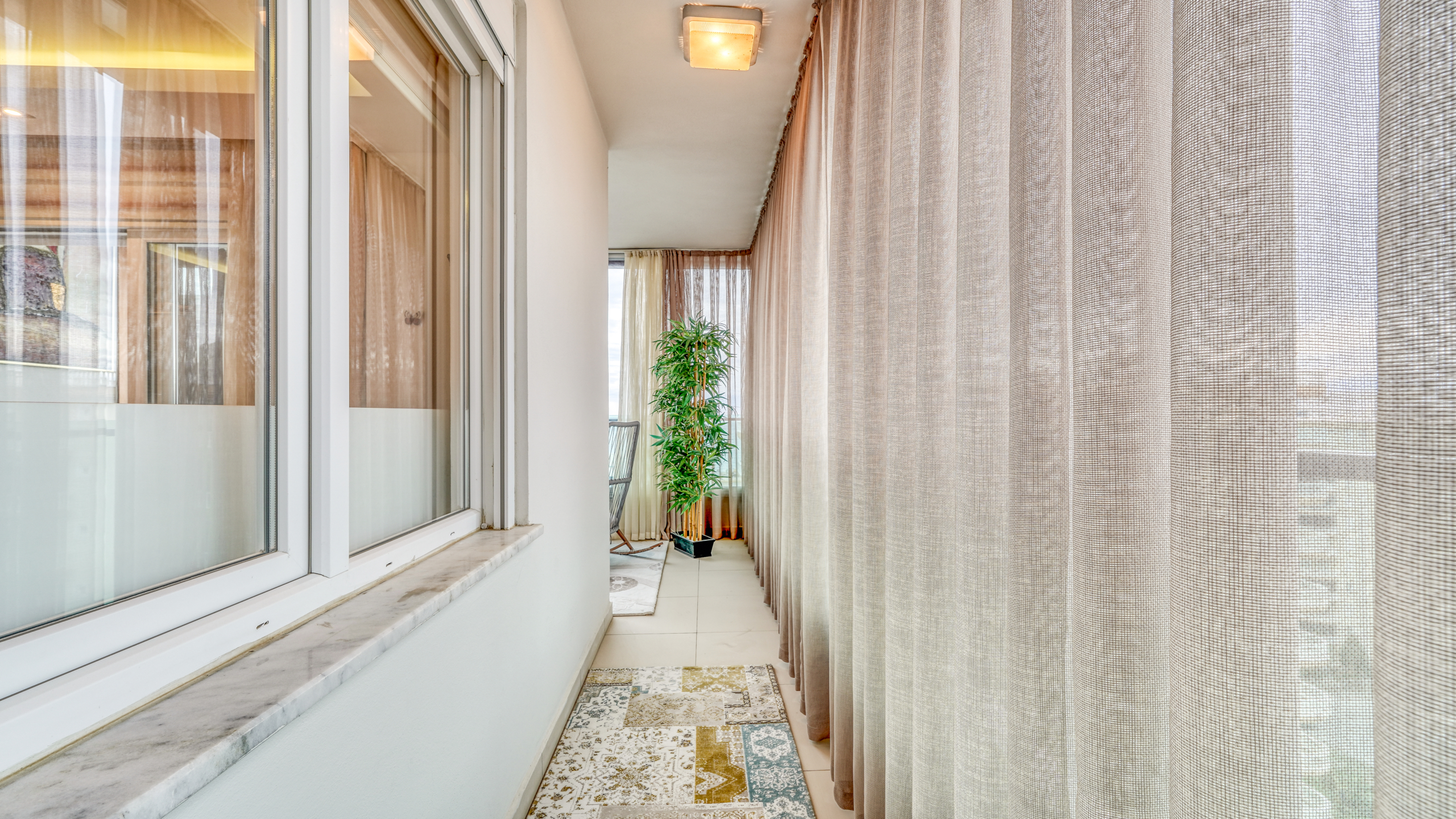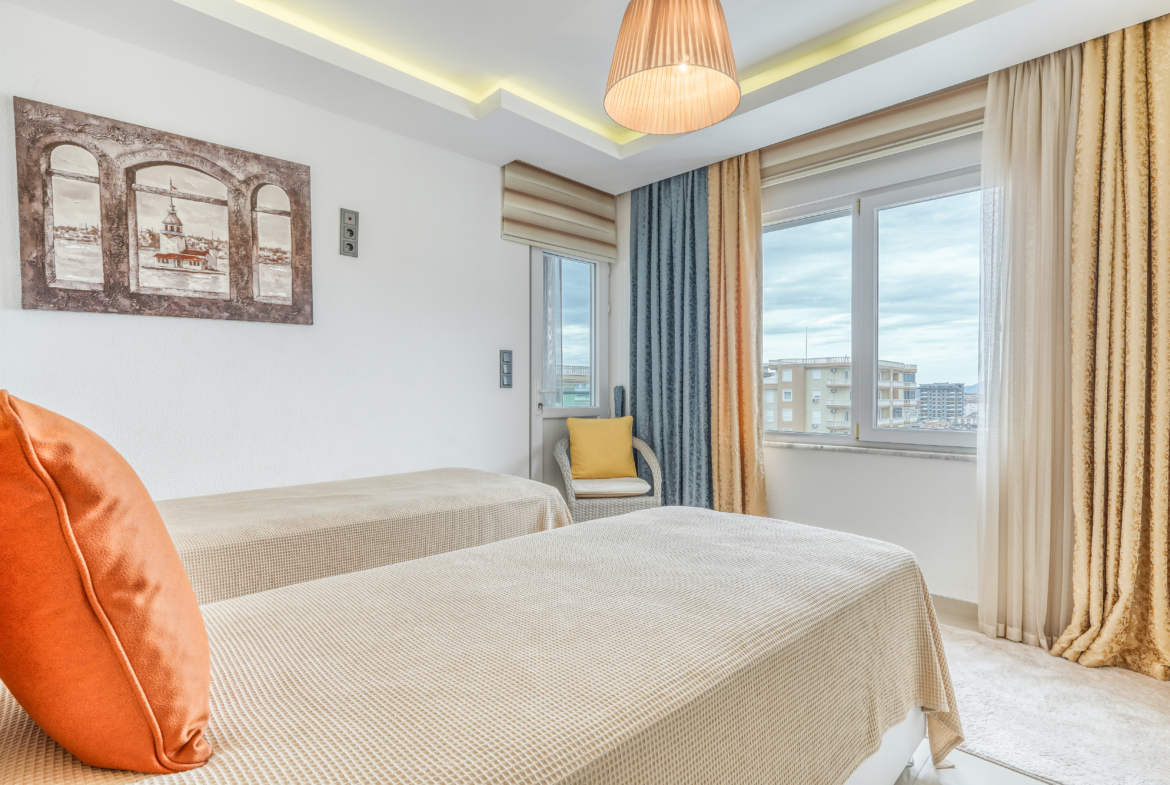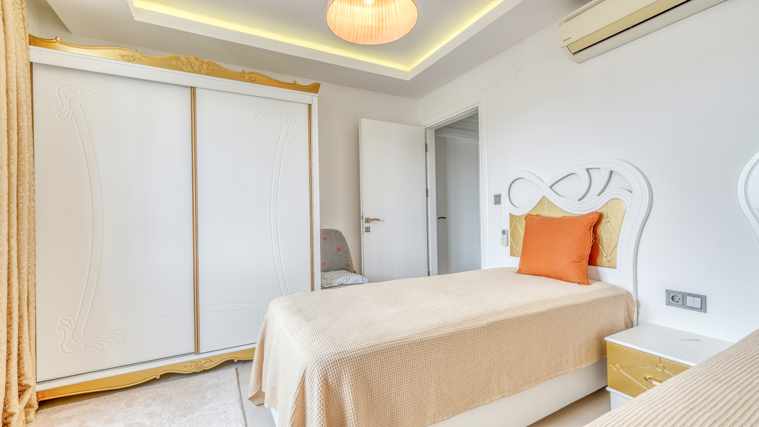 Mieszkanie dwupoziomowe na sprzedaż jest w pełni umeblowane. Posiada trzy sypialnie oraz salon kuchnią. Cztery łazienki. Trzy balkony. Mieszkanie jest zwrócone w kierunku południowo – zachodnim z częściowym widokiem na morze oraz góry. Na terenie posesji znajduje się basen, sauna oraz plac zabaw dla dzieci. Na terenie osiedla jest dozorca.